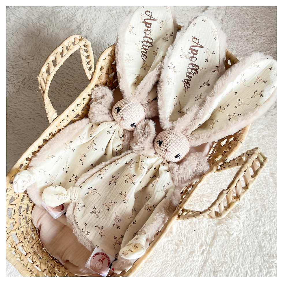 Ici vous pourrez personnaliser, un duo de doudous identiques. Idéal pour garder le contrôle et éviter le drame😅 .